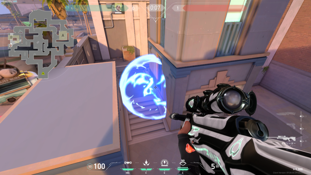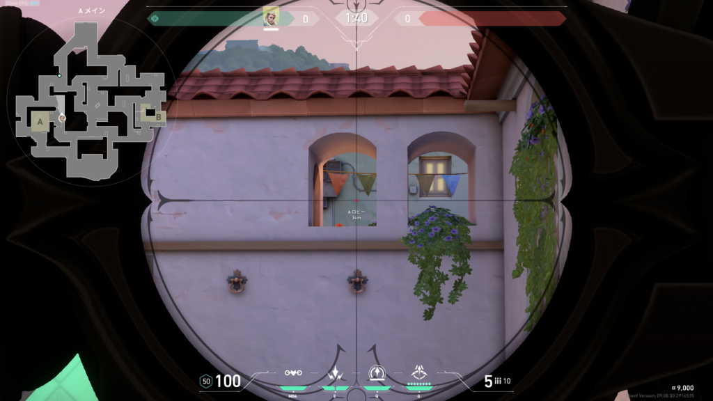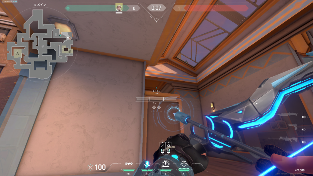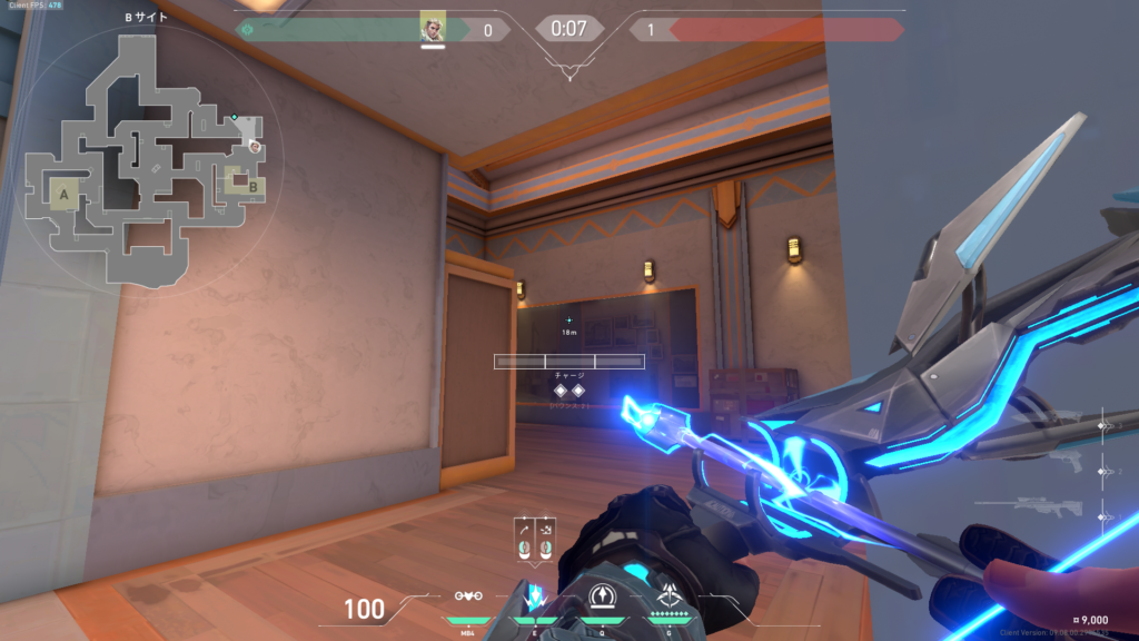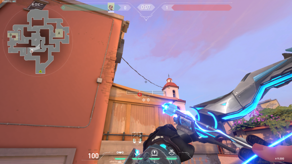 窓から見える奥の壁に向けて0バウンスフルチャージ
