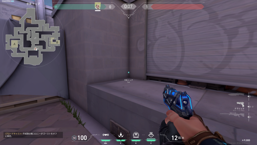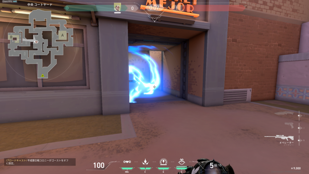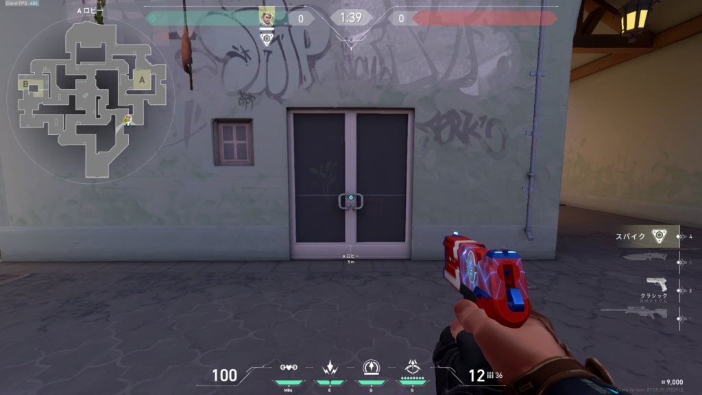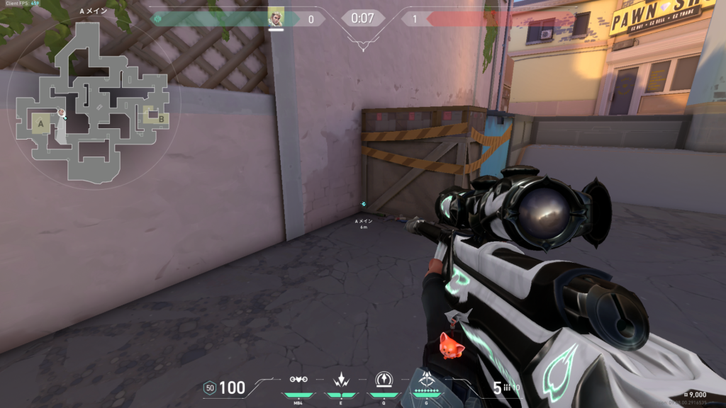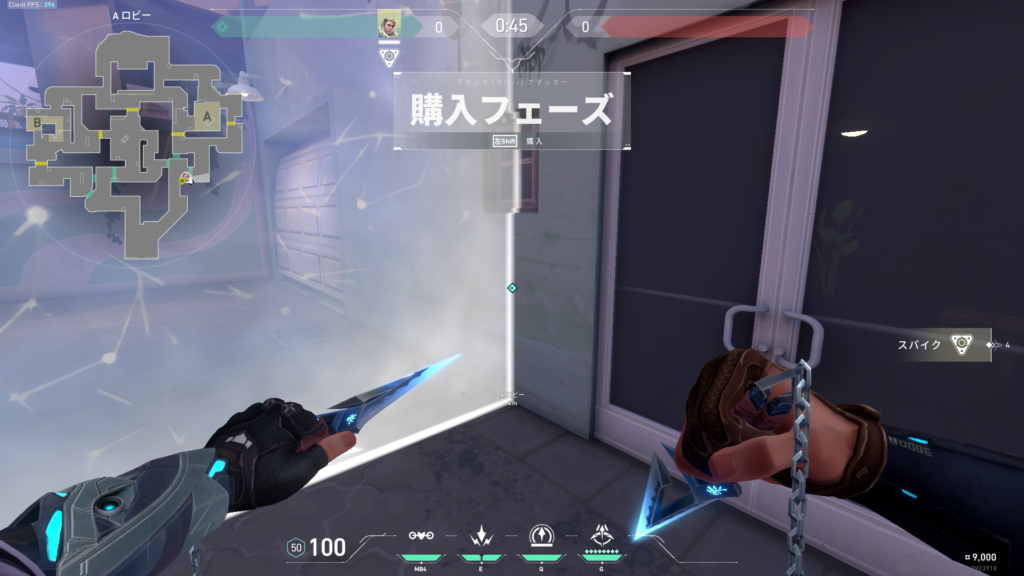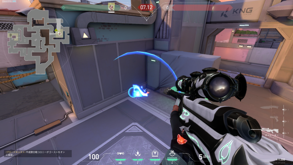 窓から見える奥の壁に向けて0バウンスフルチャージ