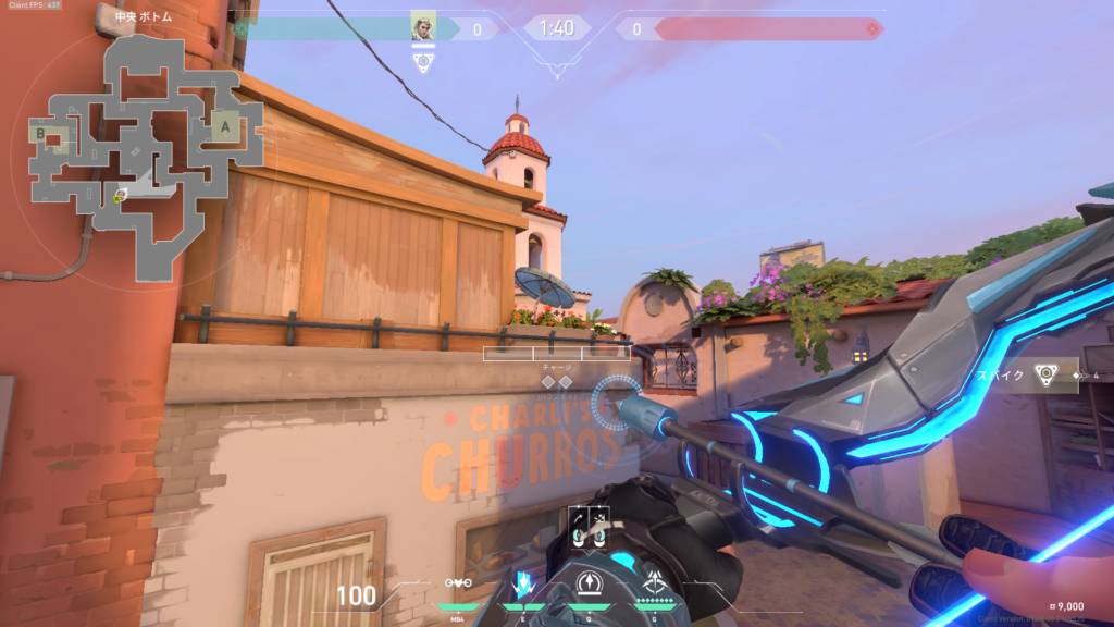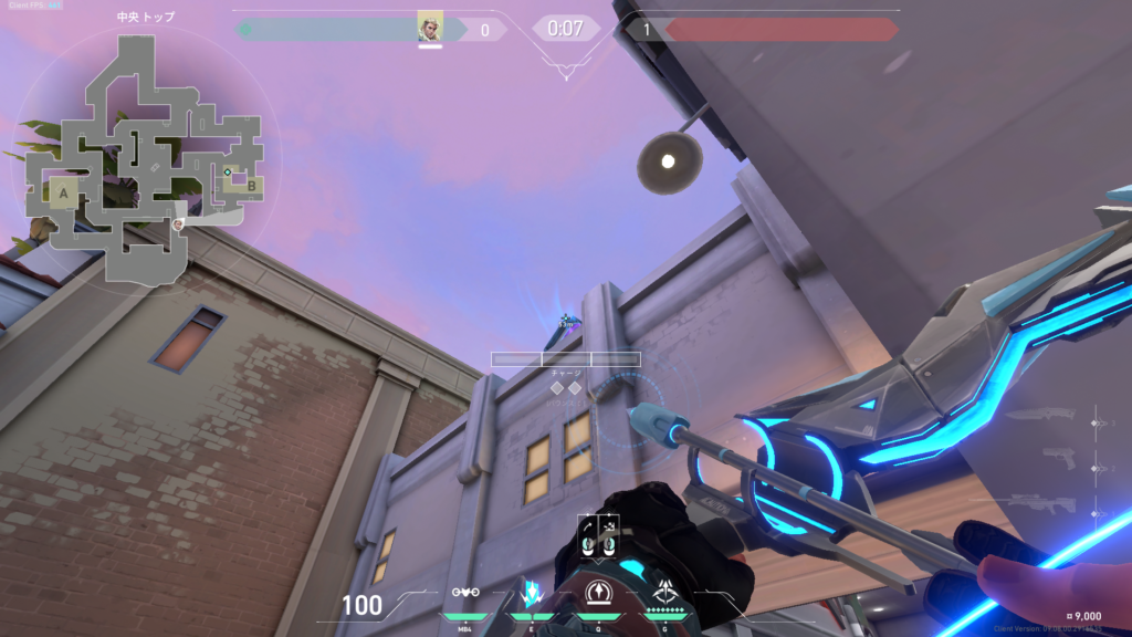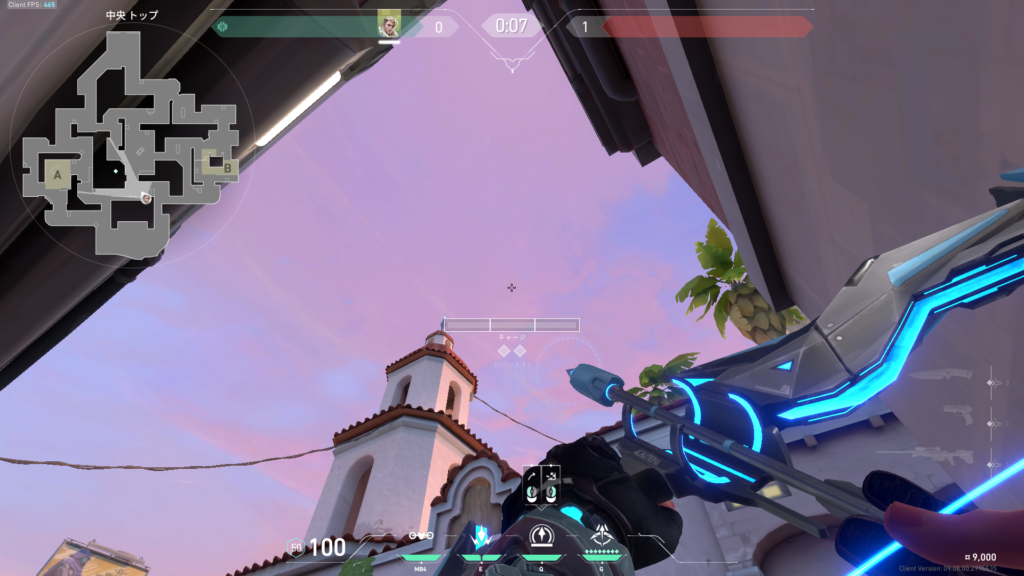 角に張り付いて画像の建物の先端とチャージゲージの左上角を合わせて1バウンス1チャージ