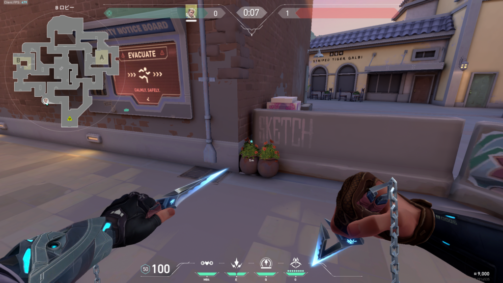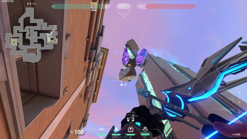 Bメインの入り口の右側に張り付いて画像の建物の角に合わせて1バウンスフルチャージ