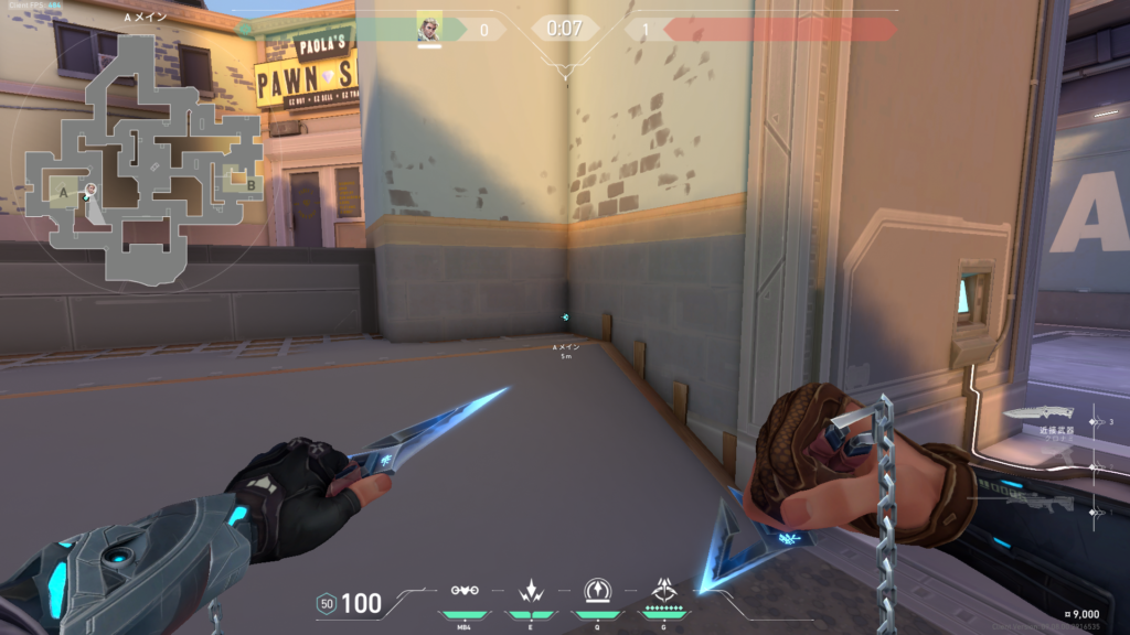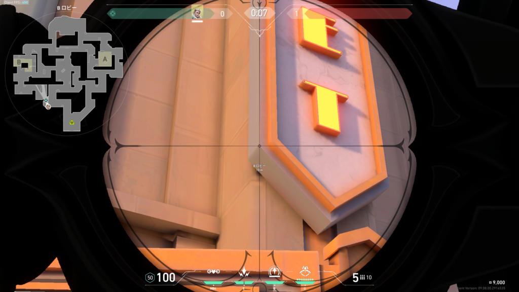 ドアに張り付いて画像の看板と円柱の角に合わせて0バウンス1チャージ